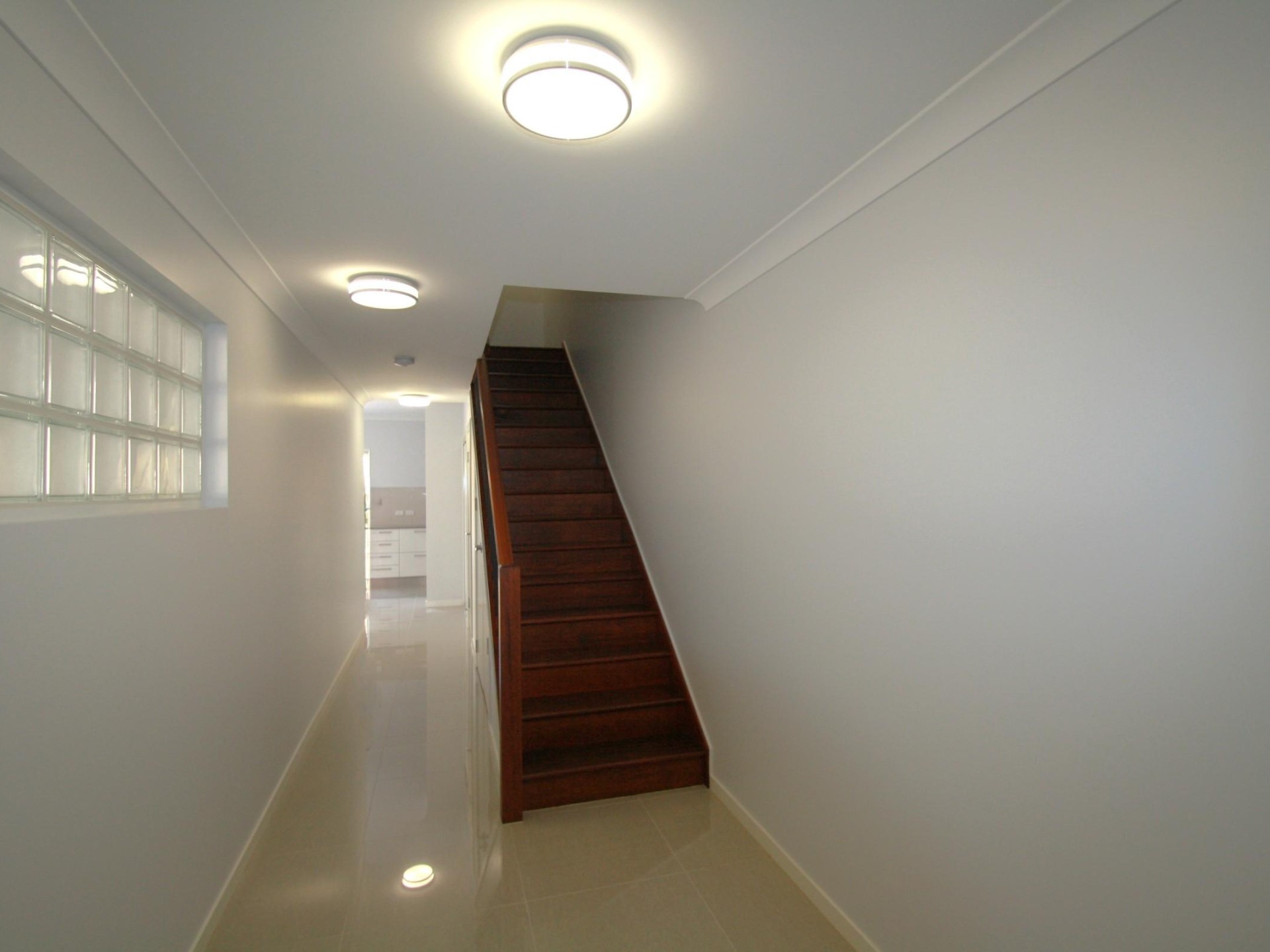 Open the door to this property and be greeted by the beautiful timber staircase leading up to the second level of this unit.