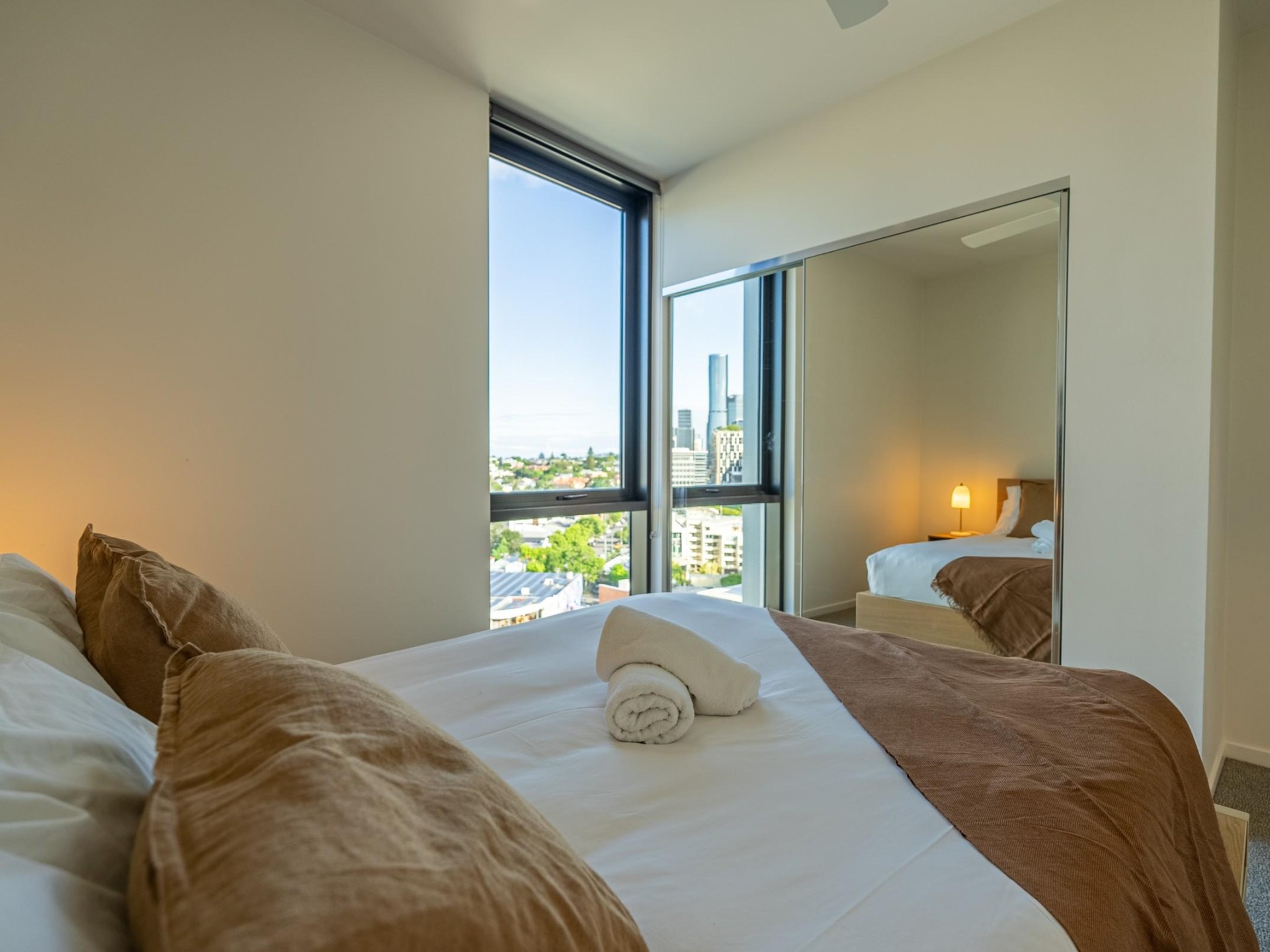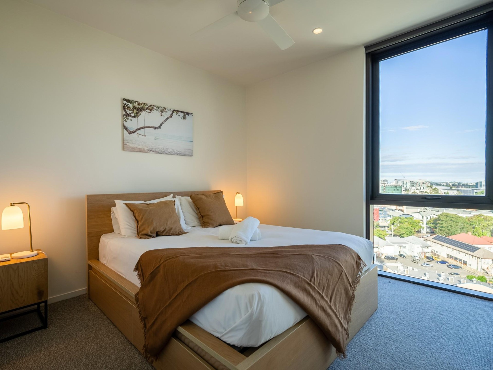 Panoramic Views: Floor-to-ceiling windows and a balcony showcasing iconic views of West End.
