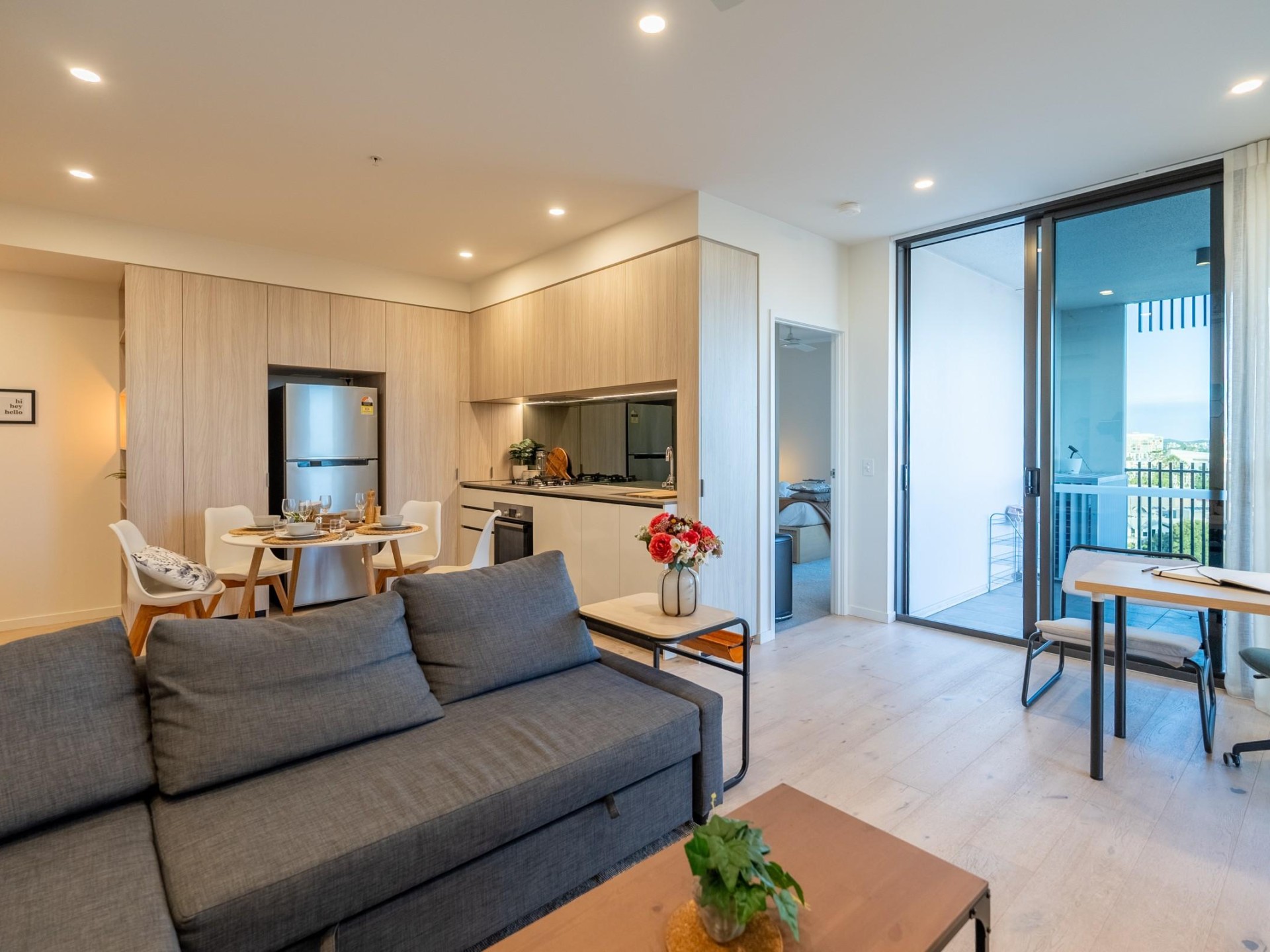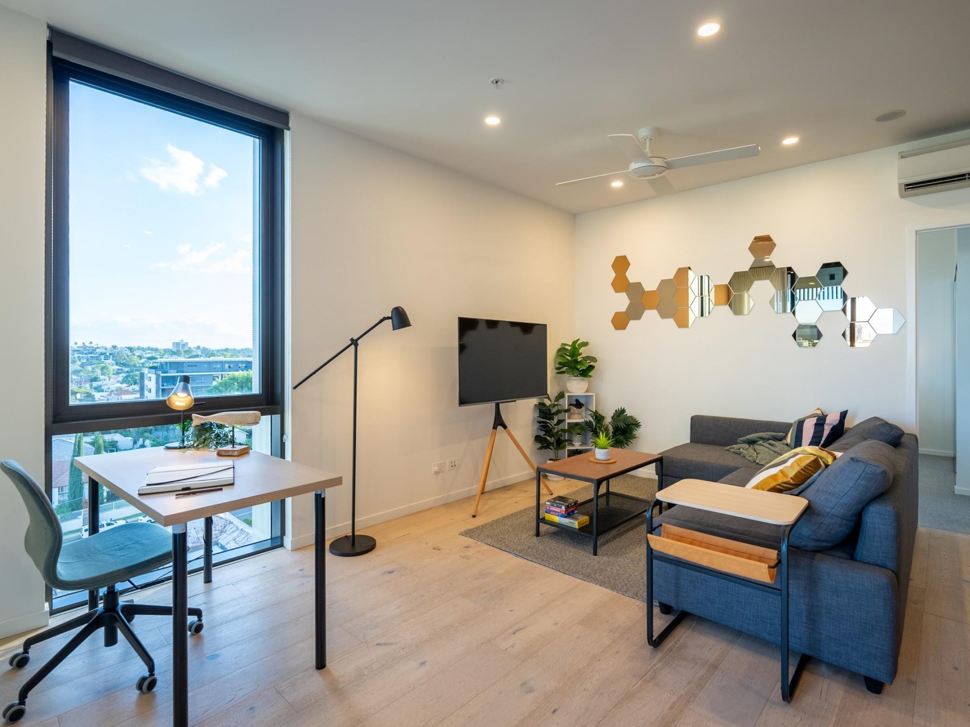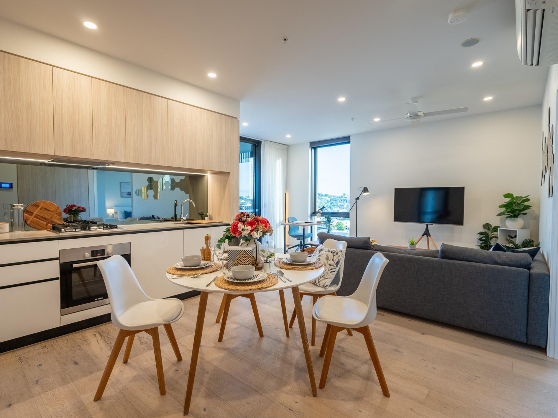 Spacious Living: A light-filled living area welcomes you, enhanced by elegant floorboards.