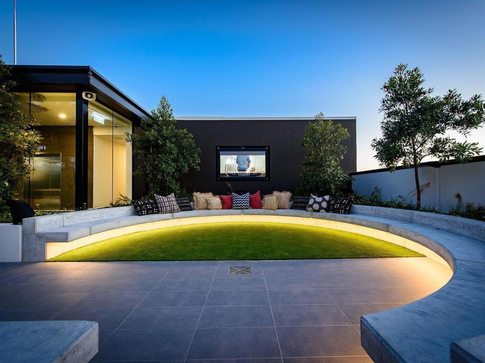 Outdoor Cinema: Relax on daybeds by the gas fire pit.